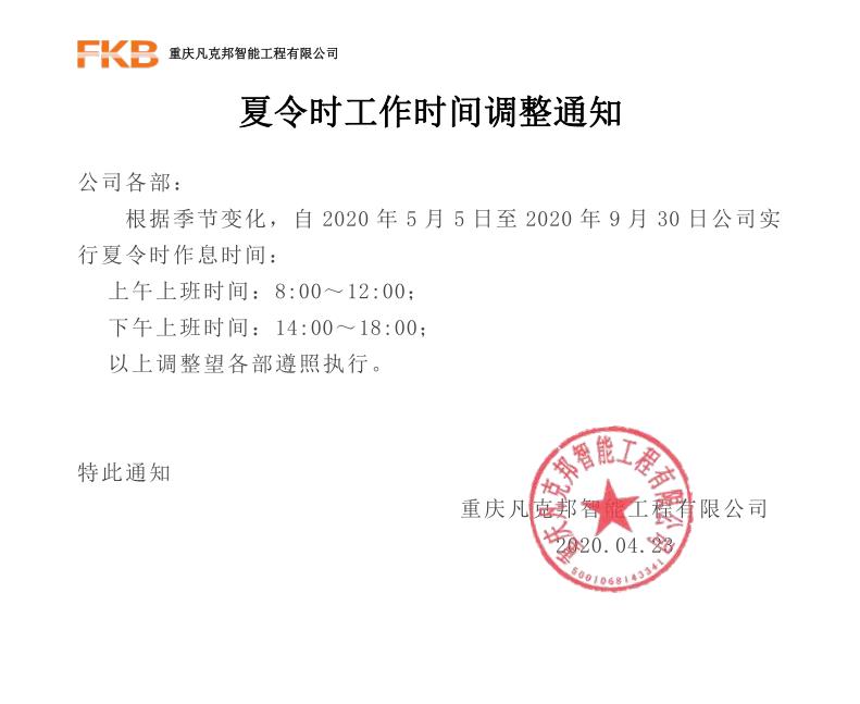 夏令時工作時間調(diào)整通知