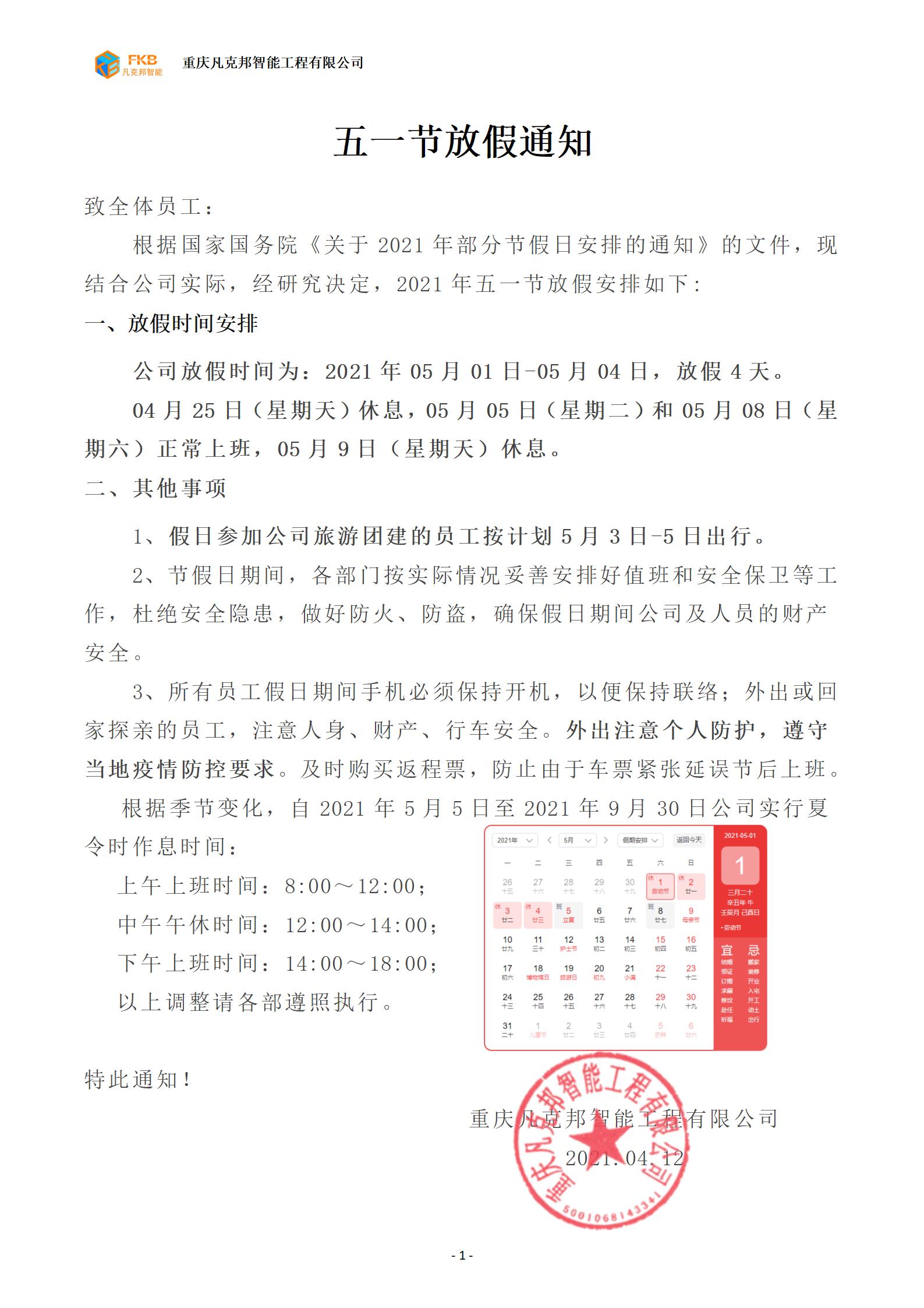 2021年五一節(jié)放假通知